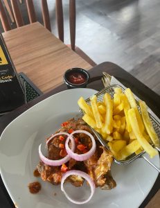 We had to settle for Fries and wings and also chicken train. The fries cost 10,500naira while the chicken train cost 4,500naira.
