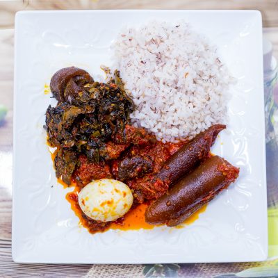 While Amala might be their crown jewel, Olaiya Foods doesn’t stop there. Their Ofada rice is equally flavorful. With diced beef, dried fish, panla, and ponmo all mingling together in spicy harmony.